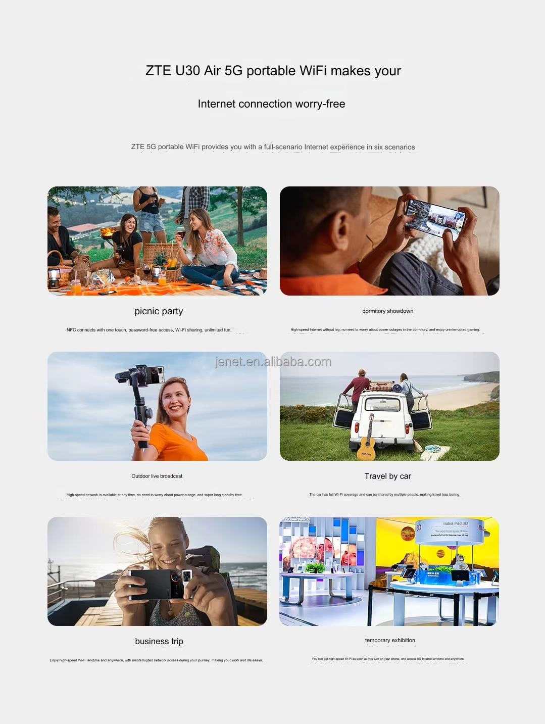 ZTE New U30 Air 5G WiFi Router Pocket WiFi Router NFC Mobile Hotspot 4500mAh Dual Bands and Support 5G Fast Network SA&NSA