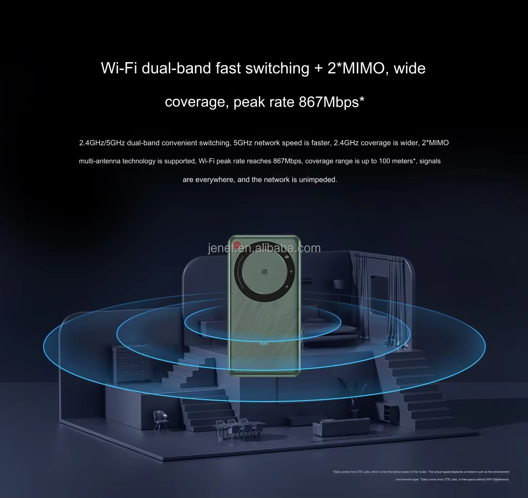 U30 Air supports Wi-Fi dual-band switching + 2x MIMO, achieving a peak Wi-Fi speed of 867Mbps with a coverage range of approximately 100 meters. Actual measured internet speeds can reach up to 500Mbps, supporting connectivity for up to 10 devices simultaneously. Additionally, ZTE U30 Air supports USB 3.0 Type-C internet access.