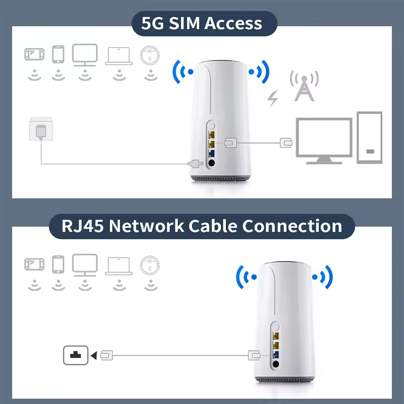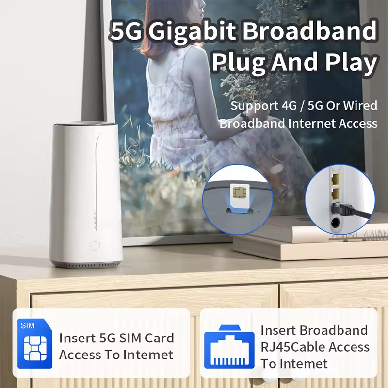 Factory OEM 5G SA NSA SIM Home Wireless Router Gigabit RJ45 Wifi6 Indoor CPE Plug and Play Dual Freq Mobile Wireless Broadband