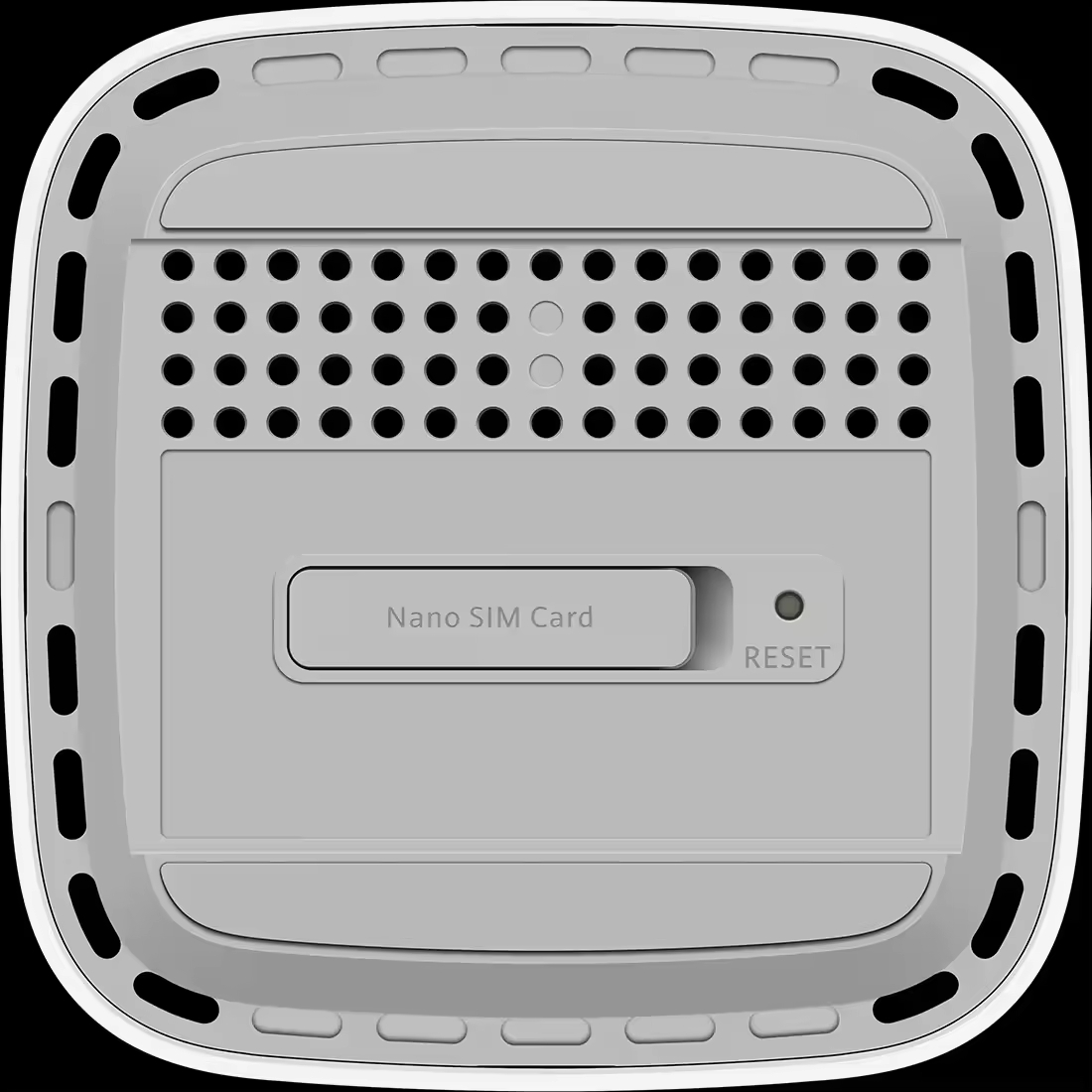 Slot for Na noSIM 4FF sim card, 1 Power button, 1 WPS button, 1 RESET button, 1 5G LED, 1 4G LED, 1 Status LED.