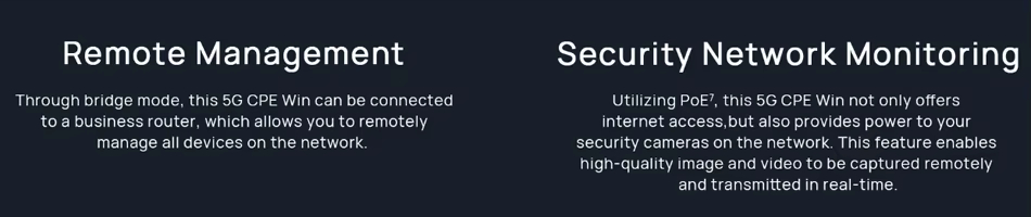 * 5G Transmission Rate: 1.65Gbps / 250Mbps (Theoretical value. The peak rate depends on the operator and the Ethernet port)