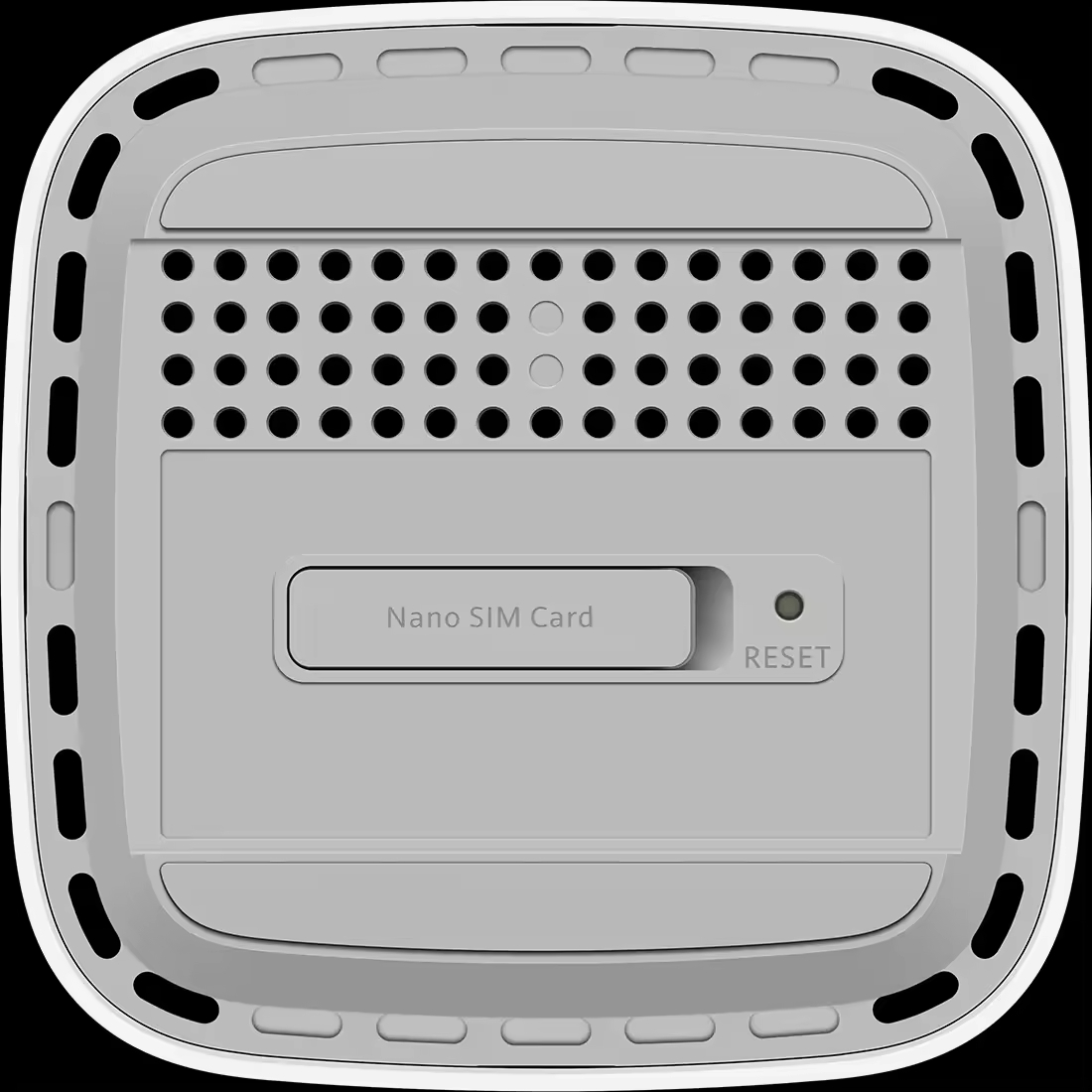 Slot for NanoSIM 4FF sim card, 1 Power button, 1 WPS button, 1 RESET button, 1 5G LED, 1 4G LED, 1 Status LED.