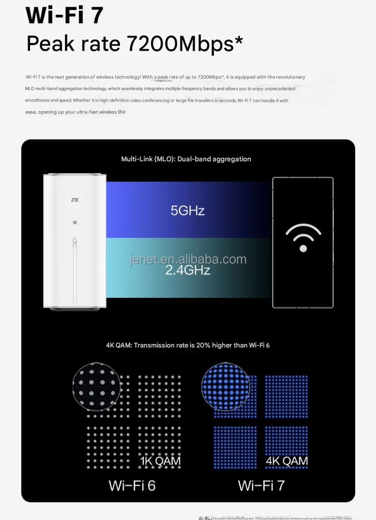 * Wi-Fi7, Supports MLO multi-band aggregation with a rate of 7200 Mbps.