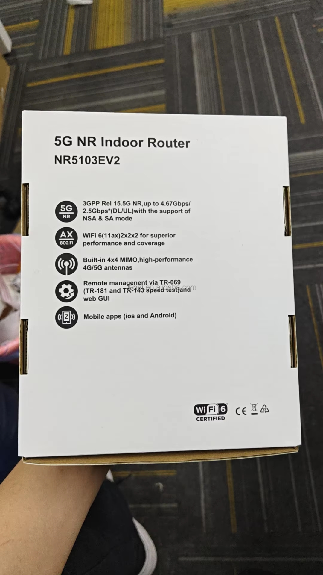 Zyxel commits to a greener planet and improving the community’s environmental well-being. The NR5103EV2 is constructed from 65% PCR plastic material, while the packaging is made from 60% recycled paper with soy ink for Volatile Organic Compounds (VOC)-free printing.